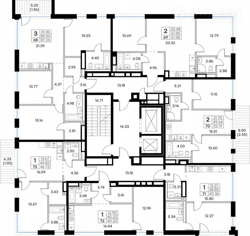 Общая площадь 52.2 м2