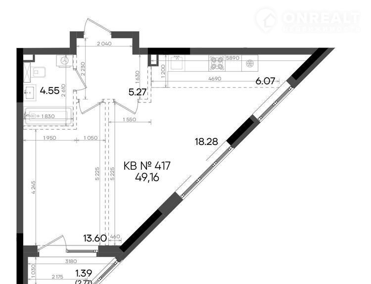 Общая площадь 49.2 м2