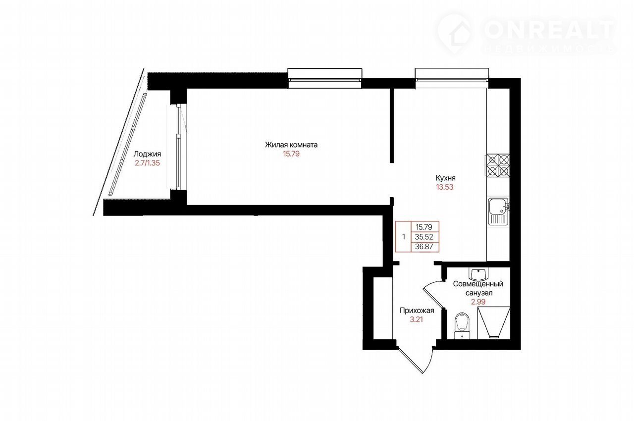 Общая площадь 36.9 м2