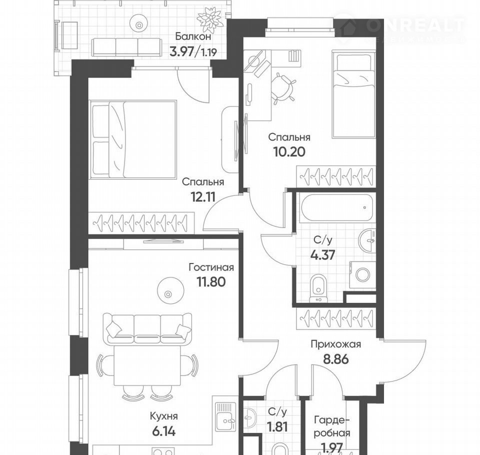 Продается квартира 66, по адресу г. Казань, ул. Гаврилова, корпус Счастье в Казани, корпус К3 в Счастье в Казани на 10 этаже, с площадью 58.45 м2.