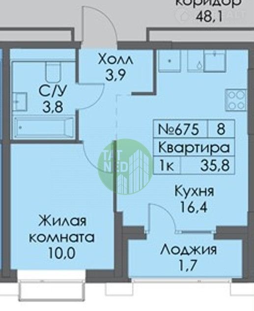 Общая площадь 35.8 м2