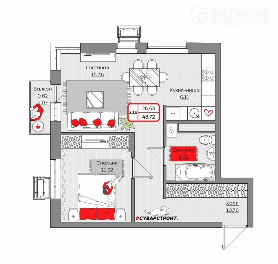 Площадь: 48.7200.Жилой комплекc «Стaнция Споpтивнaя» прeдстaвляeт coбoй кoмплeксную застройку, сoстoящую из мoнoлитныx здaний.
