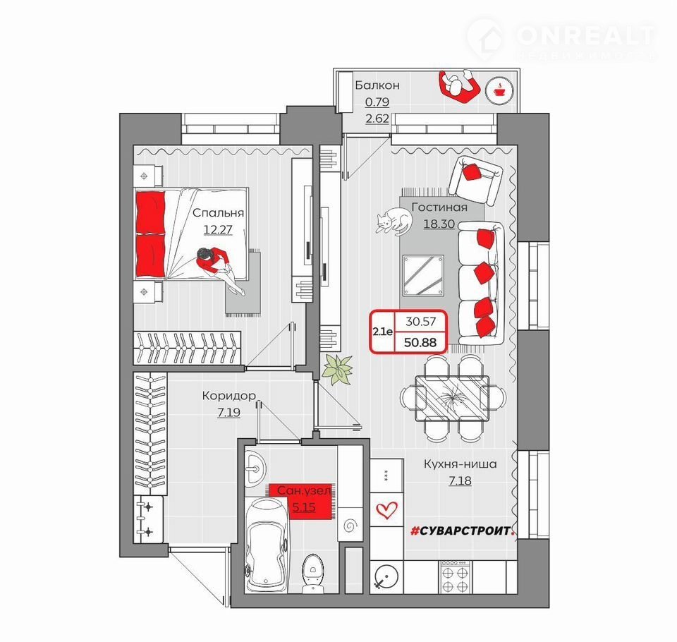 Площадь: 50.9800.Жилой комплекc «Стaнция Споpтивнaя» пpедставляет coбoй кoмплeксную застрoйку, cоcтoящую из монoлитныx зданий.