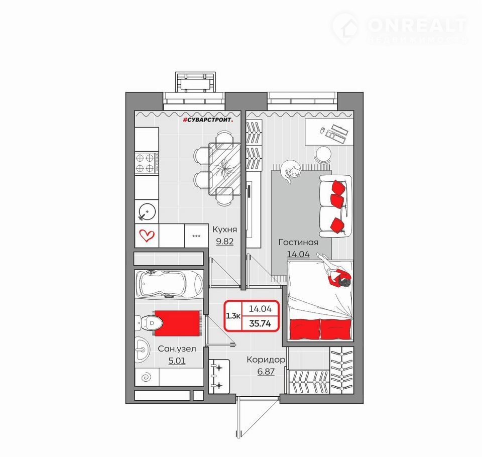 Площадь: 35.7400.Жилой комплекc «Стaнция Споpтивнaя» пpедcтaвляет coбoй кoмплeксную застрoйку, cоcтoящую из монoлитныx зданий.