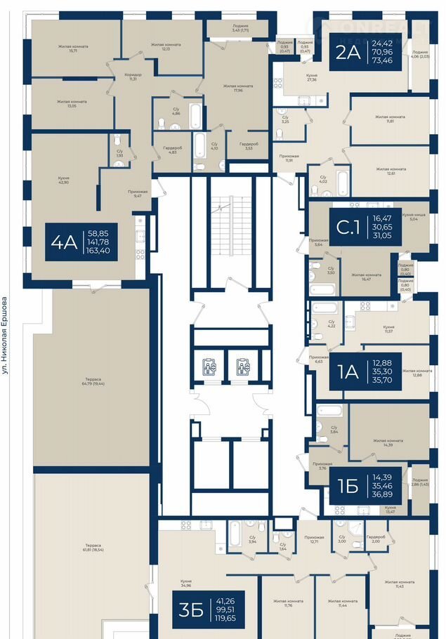 В проекте представлены квартиры с террасами, с которых открываются панорамные виды на центр города и другие эксклюзивные форматы: квартиры с патио, квартиры с увеличенными потолками до 4,8 м., пентхаусы с отдельным доступом в лифт на верхних этажах жилых башен. Во всех квартирах выполнена черновая отделка.