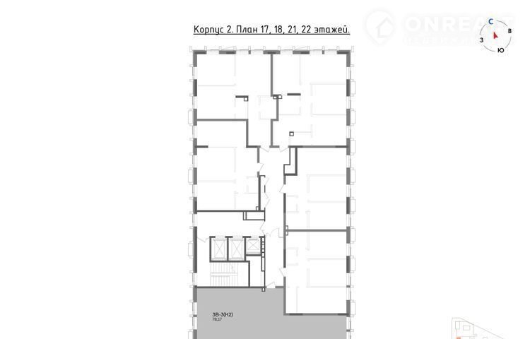 3-комнатная квартира, 78.2 м2, этаж 21 / 22, на продажу в Казани
