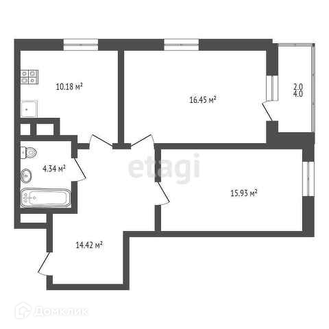 Общая площадь 60.7 м2