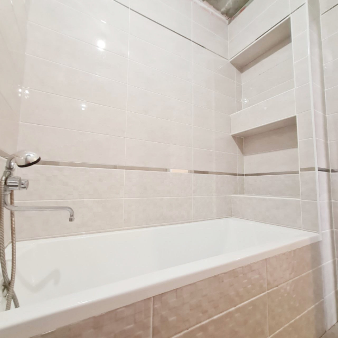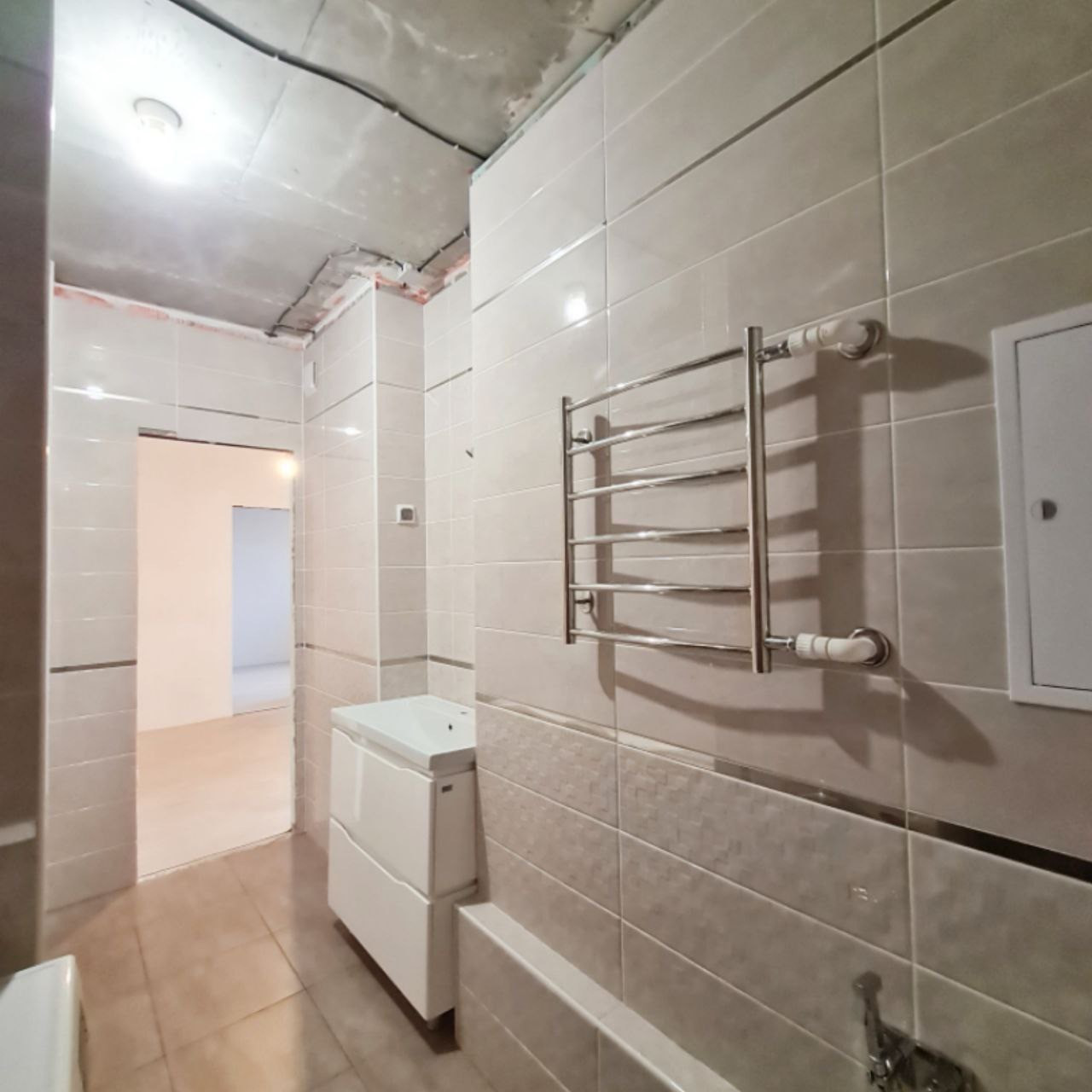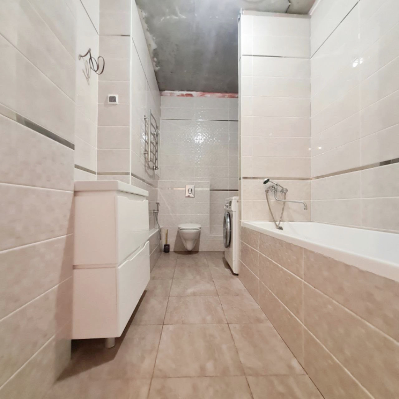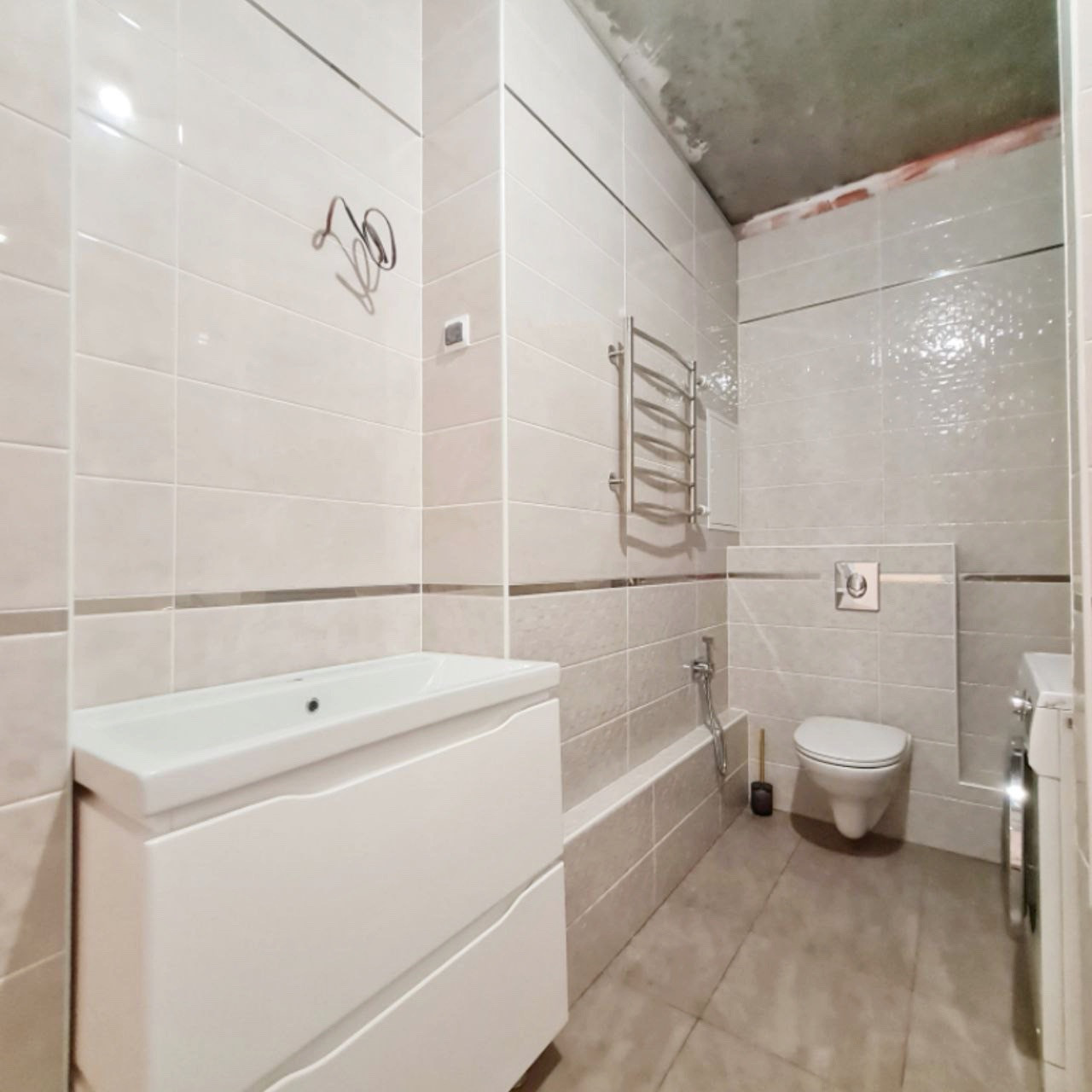Санузел в современном кафеле, пол тёплый