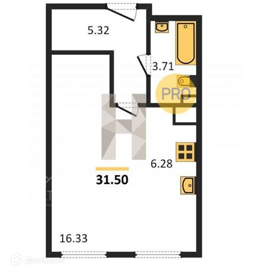 Общая площадь 31.5 м2