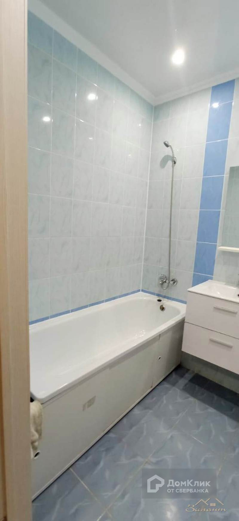 Совмещённый санузел в кафеле, на кухне и в коридоре на полу выложена плитка.