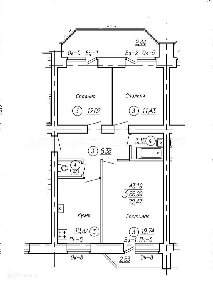 Общая площадь 72.5 м2