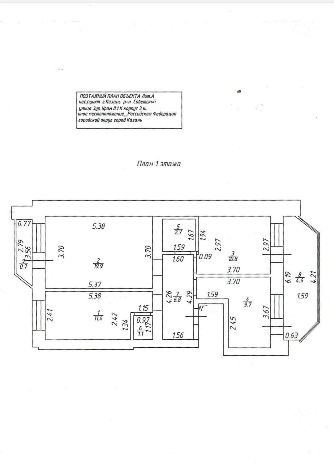 3-комнатная квартира, 62.4 м2, этаж 1 / 10, на продажу в Казани, улица Зур Урам, 1Кк3