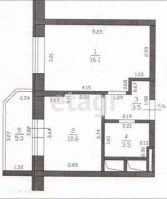 39,5 кв.м. по выписке. + просторный балкон.