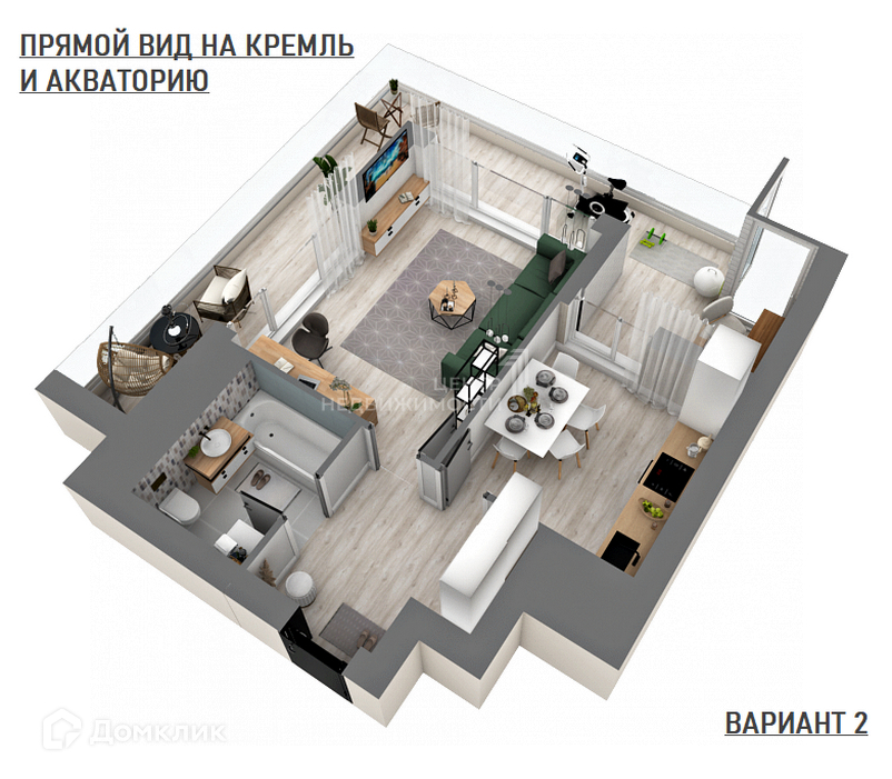 Уникальная планировка, прямой вид на Кремль и акваторию двух рек Казанку и Волгу.