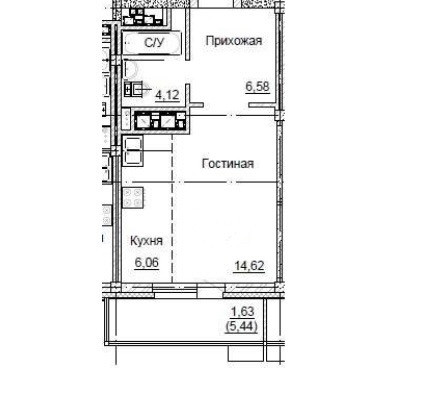 Гостиная + кухня 6,06 + 14,62 кв.м.