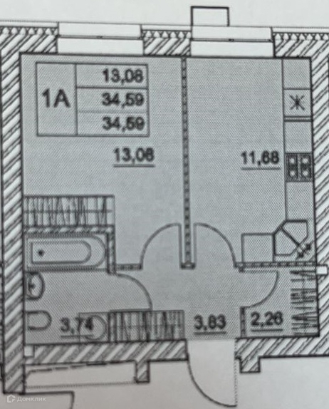 Общая площадь 34.8 м2