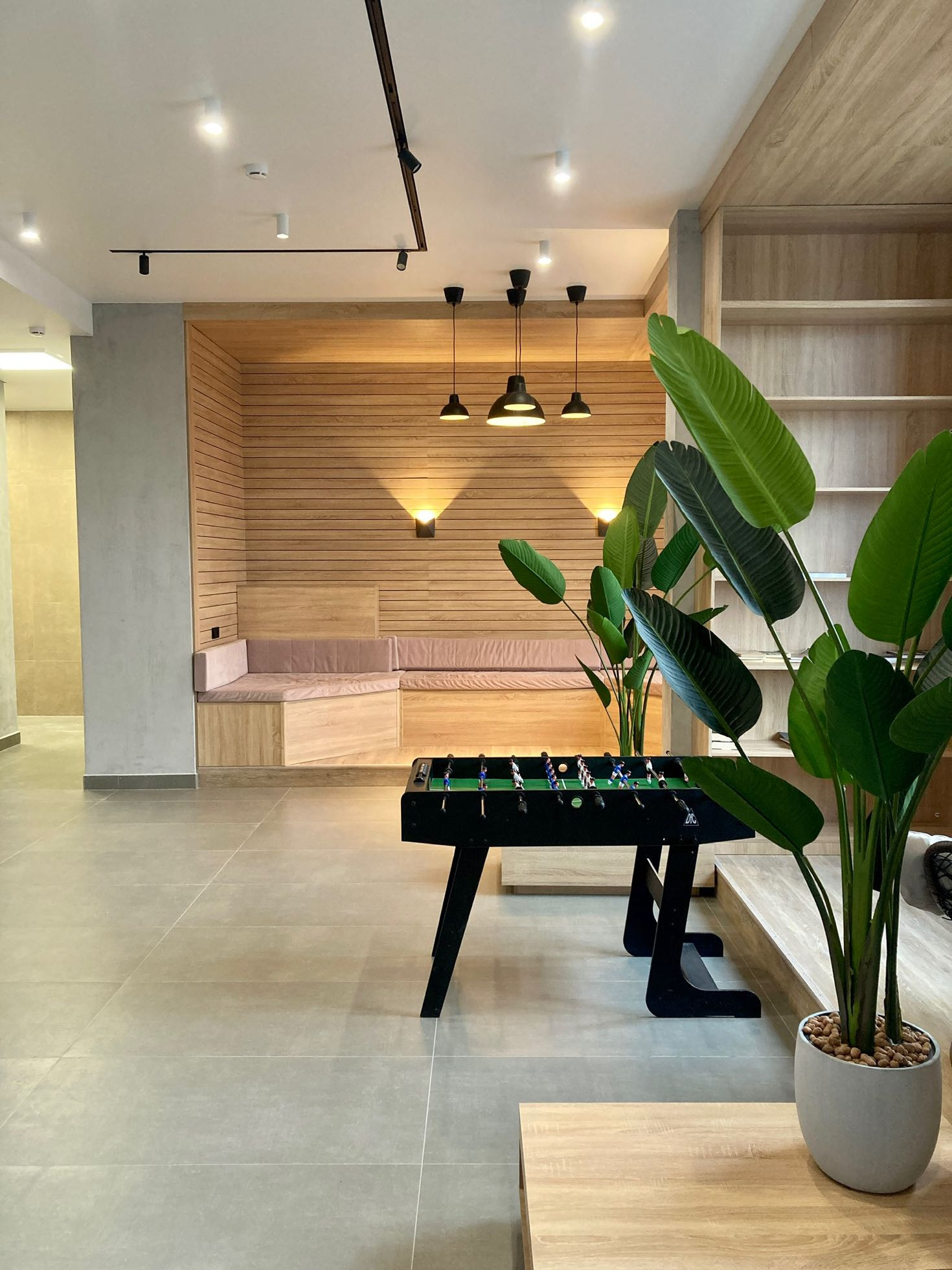 Большая прихожая с местом под гардероб.