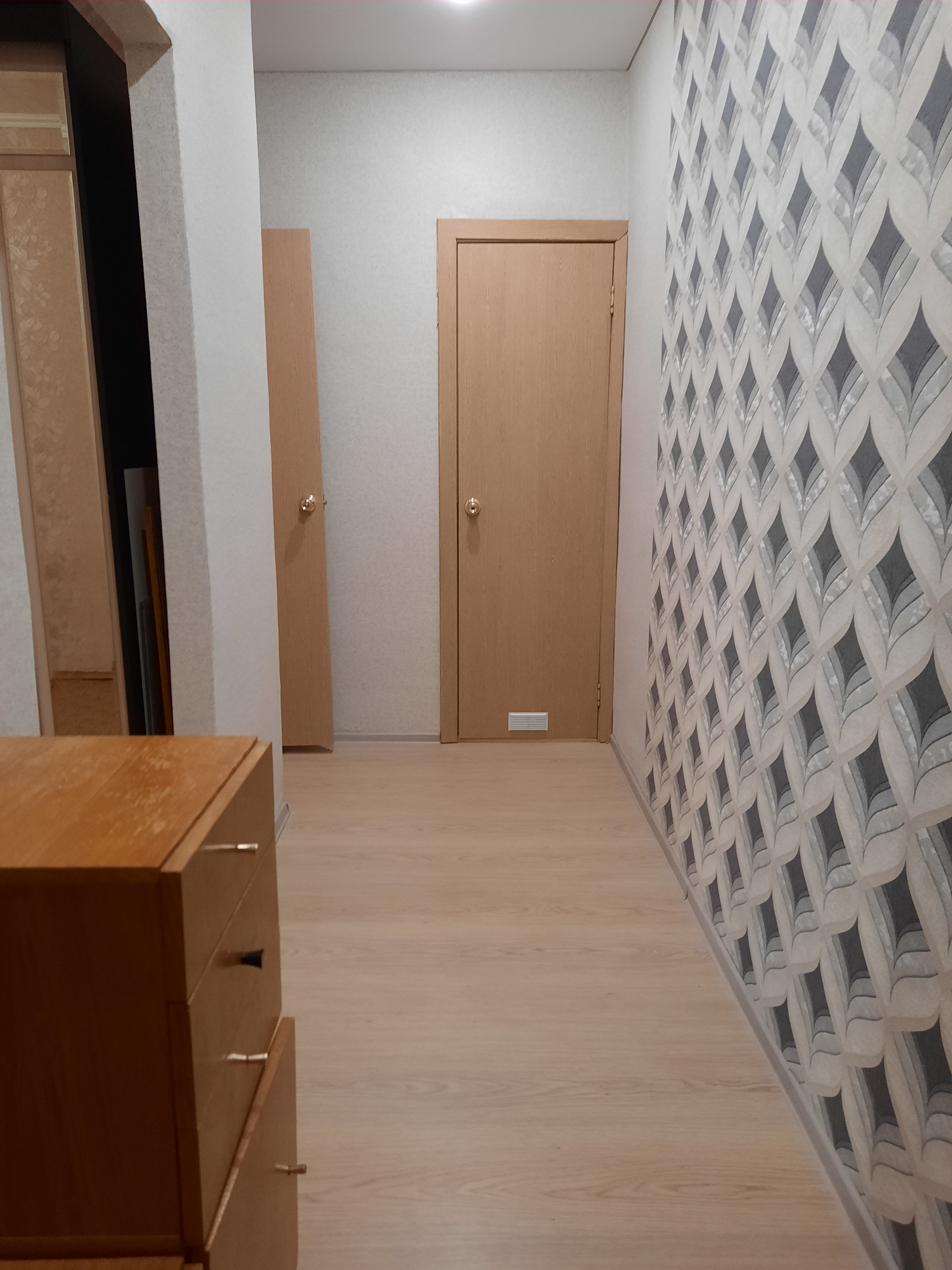 · на полу ламинат в кухне и в коридоре