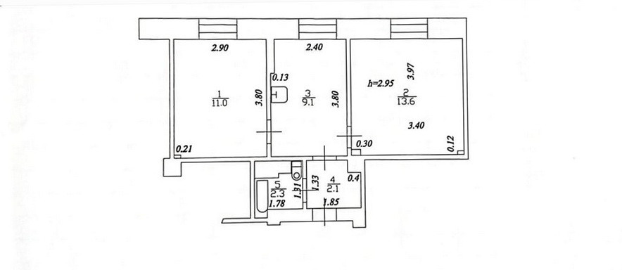 Прекрасная планировка квартиры. Комнаты изолированные, площадью 13,6 кв. метров и 11 кв. метров. Просторная кухня 9,1 кв. метров с новым встроенным кухонным гарнитуром. С/узел совмещен.