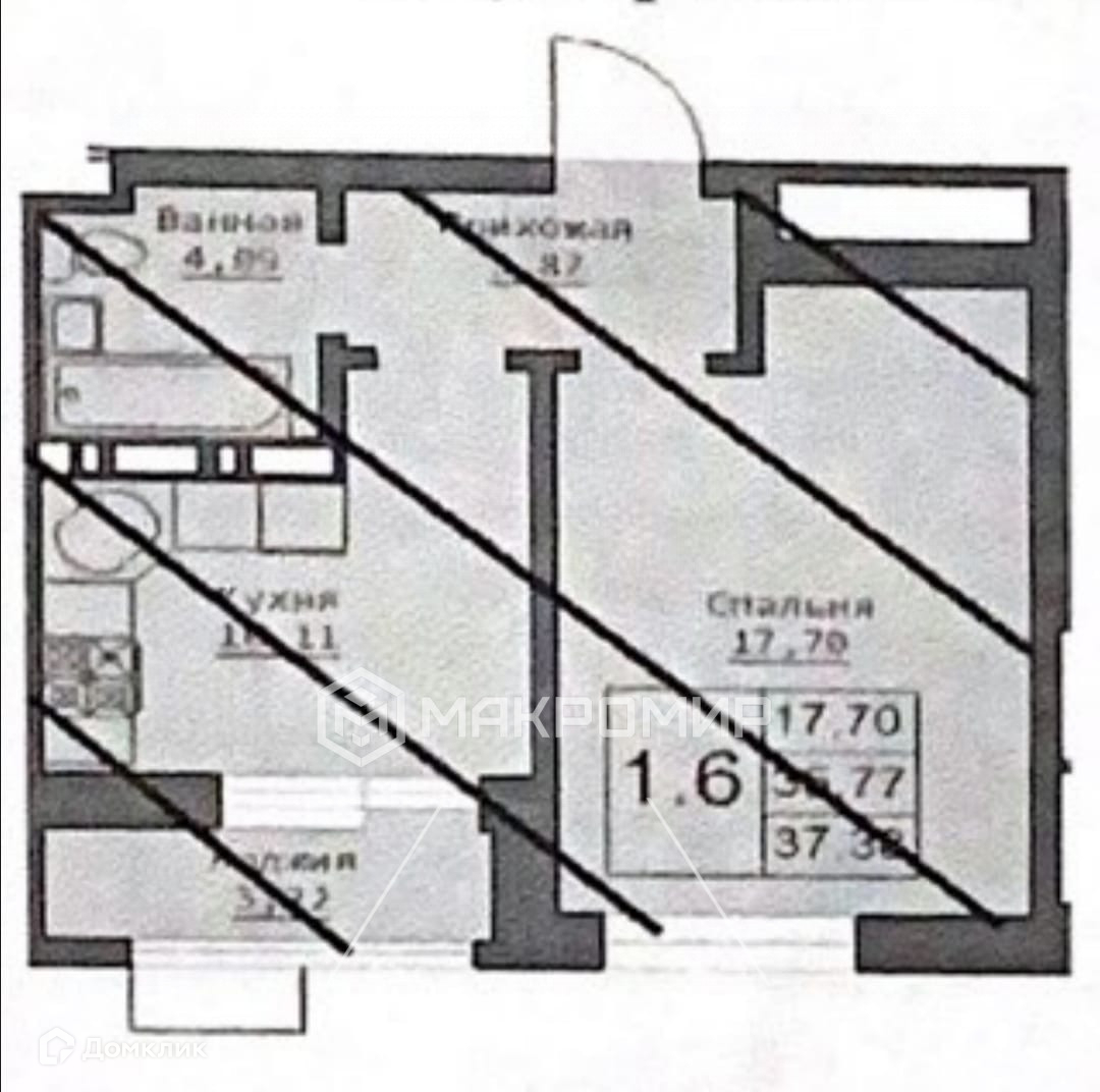 Общей площадью 37,78 кв.м., комната 17,70 кв.м., кухня 10,11кв.м.