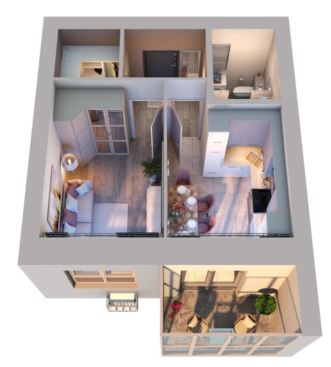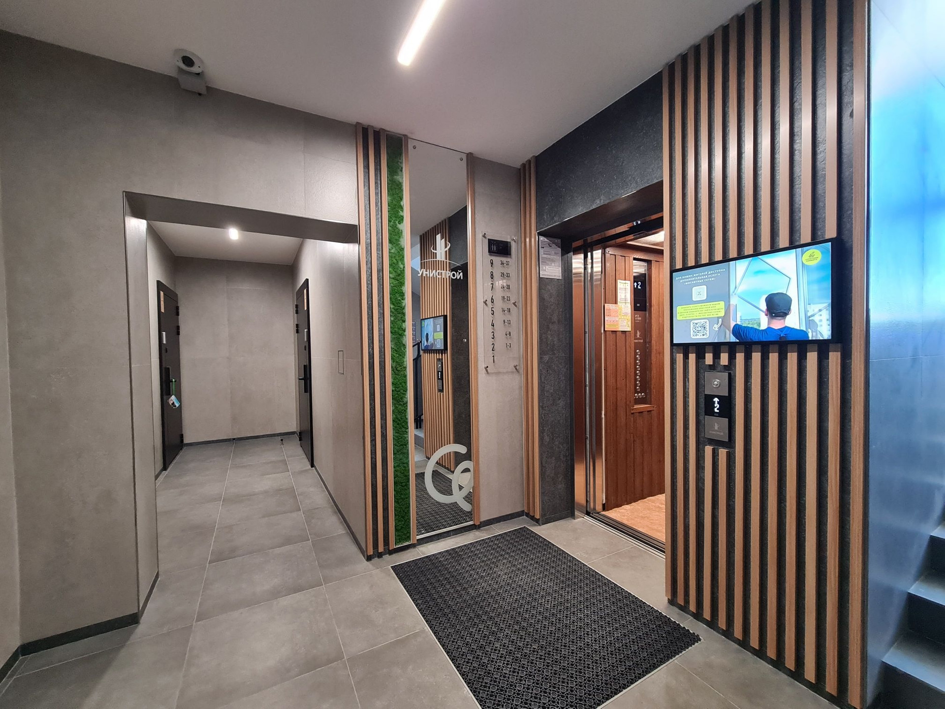 Квартира очень светлая, с продуманной планировкой. При входе есть большая гардеробная. Установлена качественная входная дверь с электронным замком.