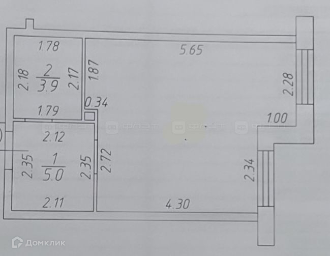 Общая площадь 31.6 м2