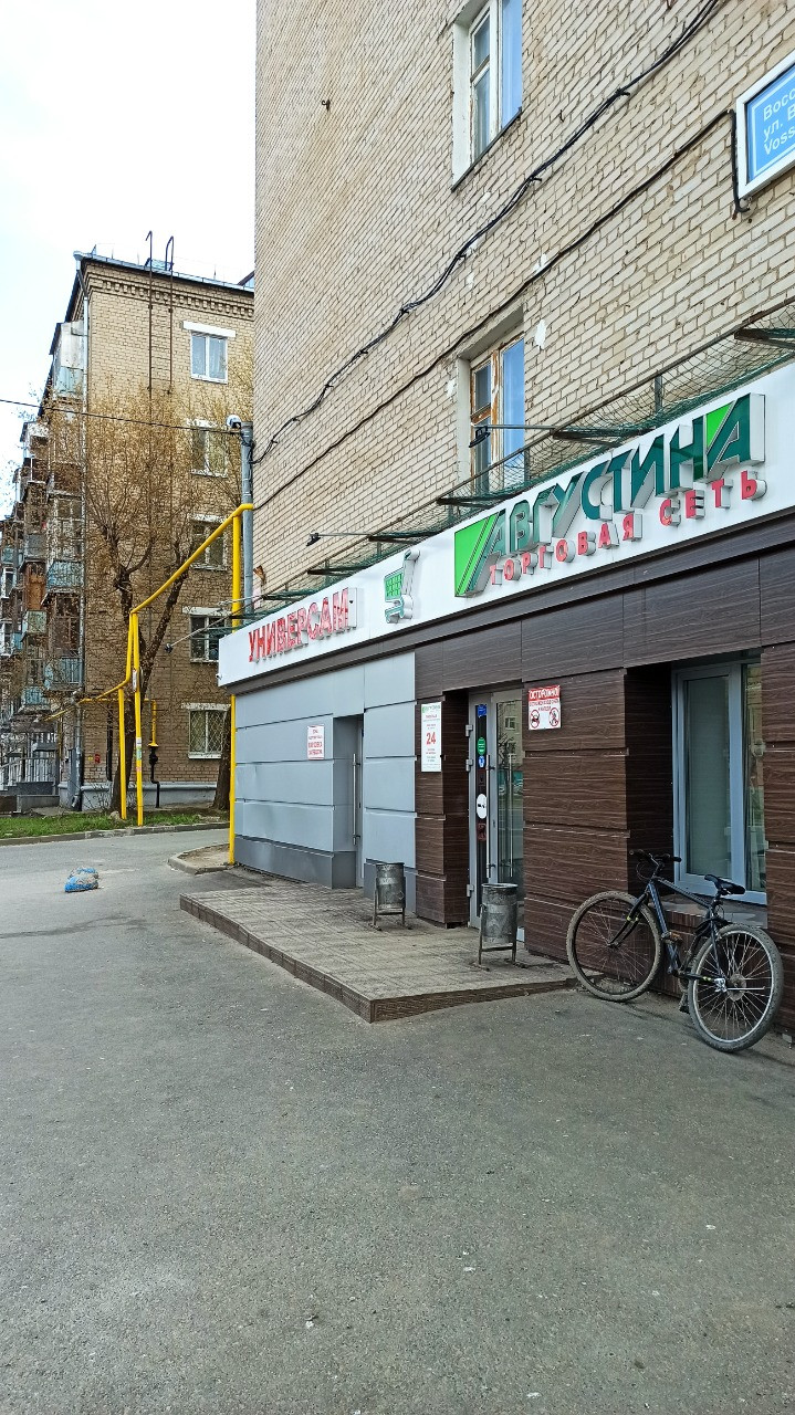 Продуктовый магазин на 1 этаже жилого дома.