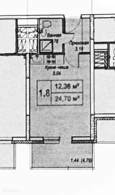 Общая площадь 24.7 м2