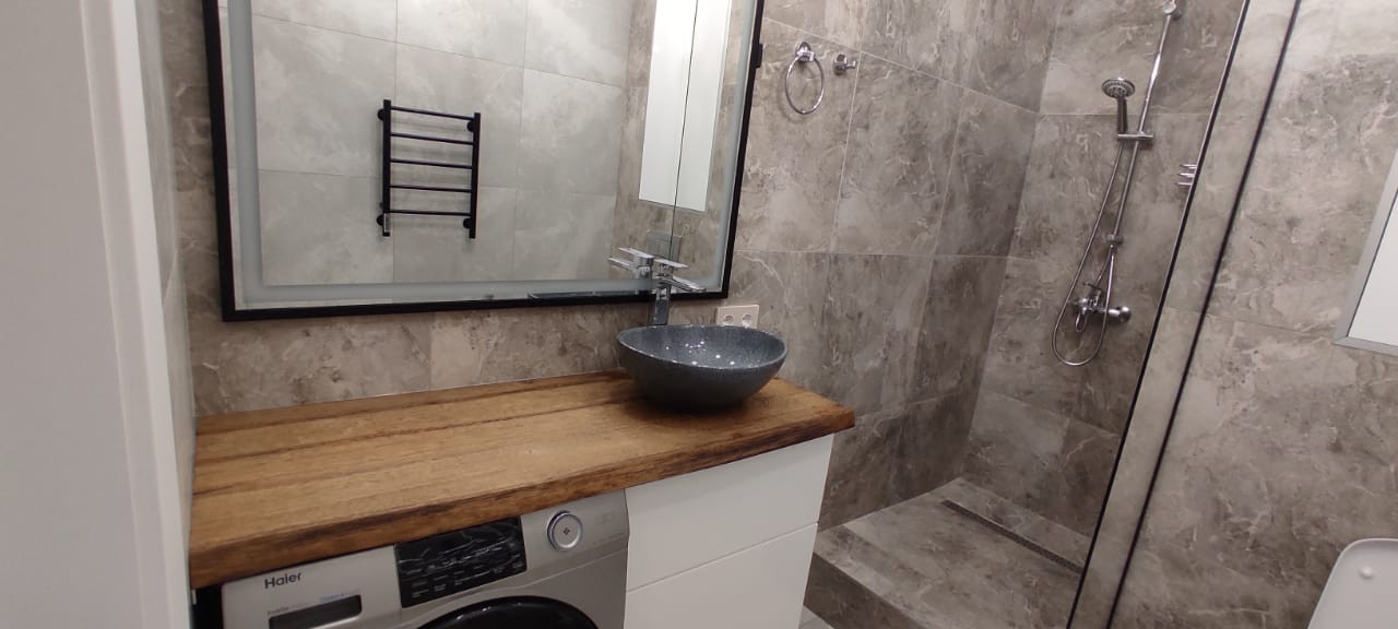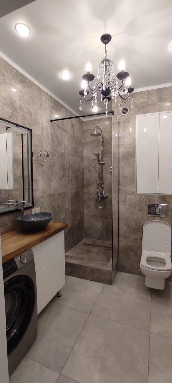 Квартира выполнена в лаконичном стиле в светлых тонах, на полу самый современный материал кварц винил, который очень легко мыть и не боится влаги, санузел в современном керамограните.
