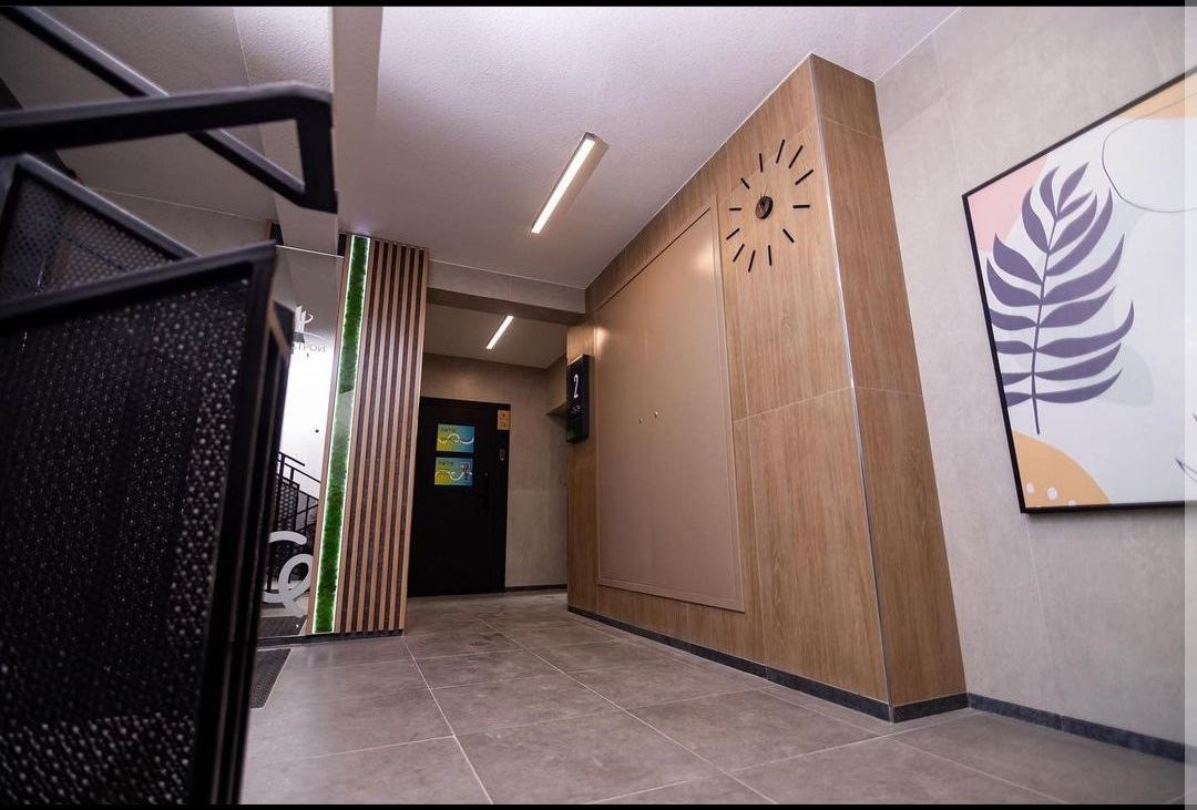 В квартире сделана качественная предчистовая отделка с лучевой разводкой отопления, входная дверь с электронным кодовым замком, который также можно открыть по отпечатку пальца, установлен видеодомофон, система очистки воды, большие низкие окна, высота потолков 2,7 метра. Стоят умные счетчики, автоматически передают показания. Уже подготовлены места для установки кондиционеров.