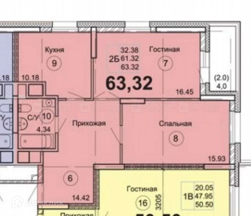 Общая площадь 63 м2