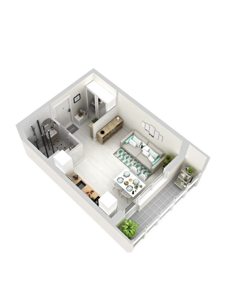 7 м2 кухня совмещенная с комнатой