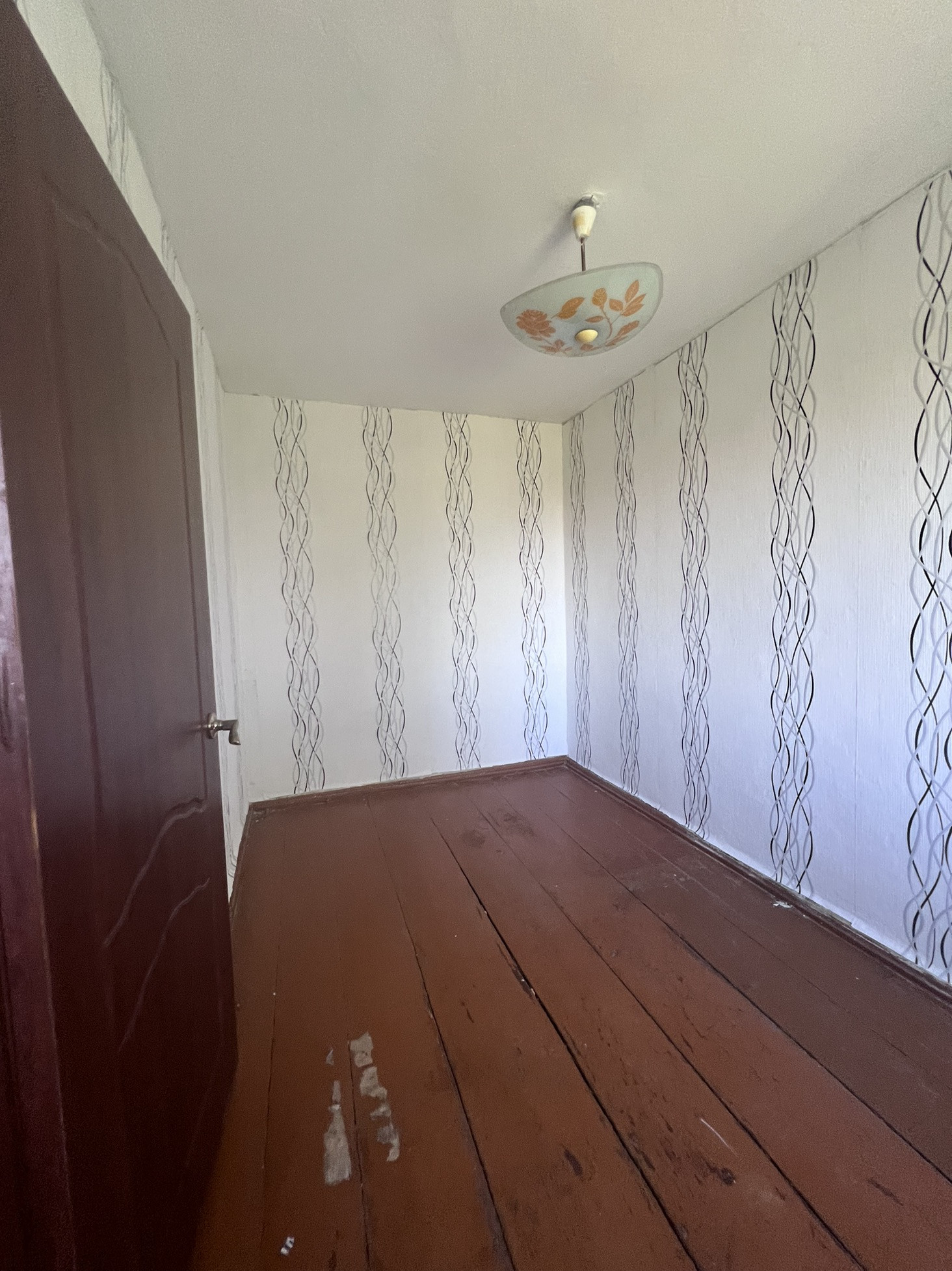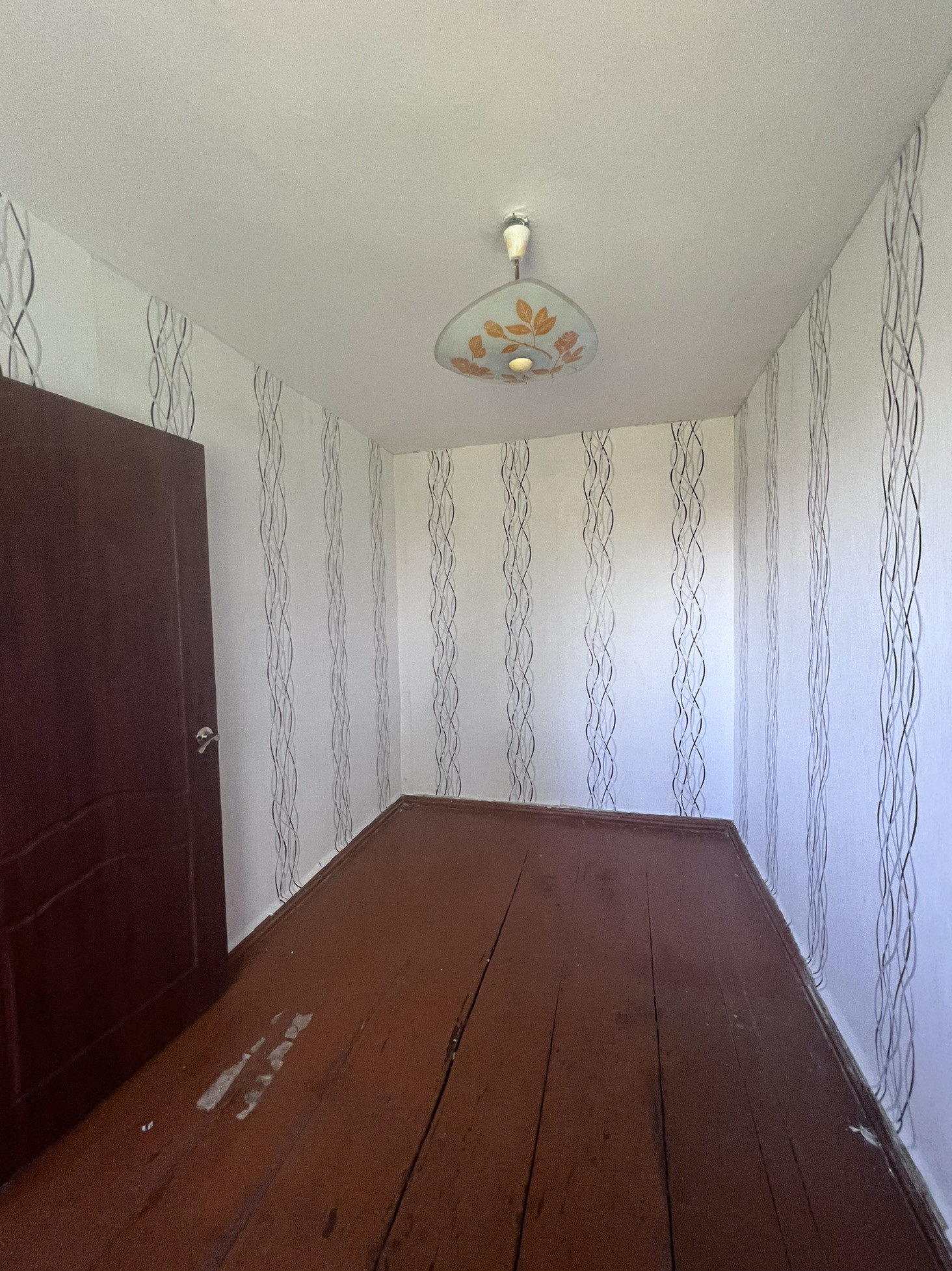 Железная входная дверь, полы деревянные, потолки покрашены, санузел совмещен( без ремонта). Требуется косметический ремонт во всей квартире.