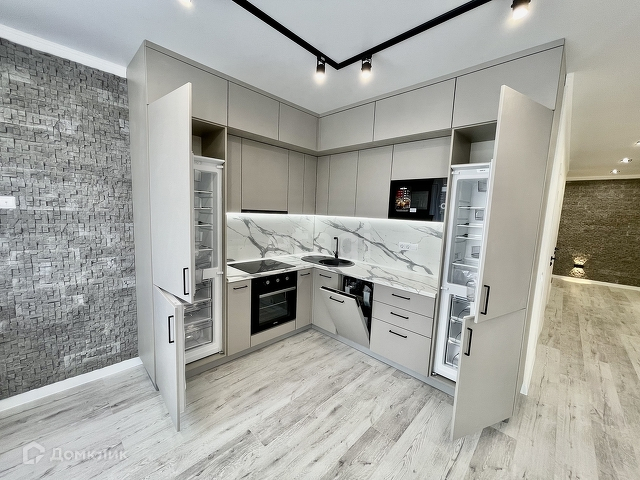 - кухню-гостиную - 21 кв.м., с кондиционером, кухонным гарнитуром со встроенной техникой (2 холодильника, посудомойка, варочная панель, духовой шкаф, вытяжка), диваном которые остаются в подарок новым хозяевам;