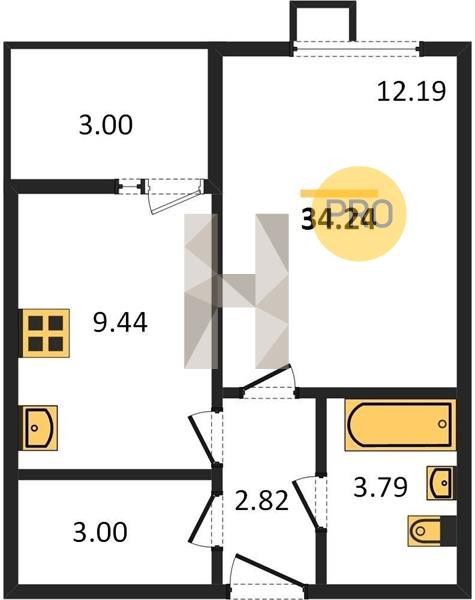 Общая площадь 34.2 м2
