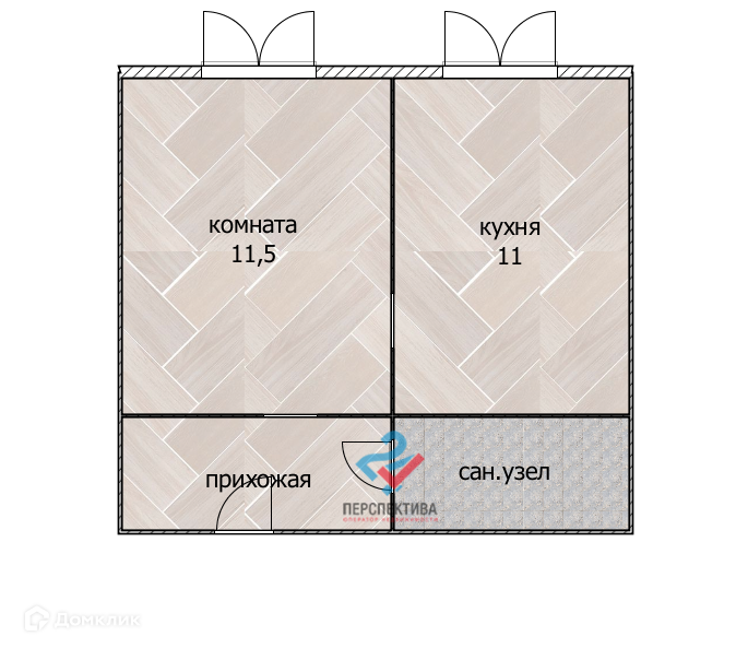 Общая площадь 28.5 м2