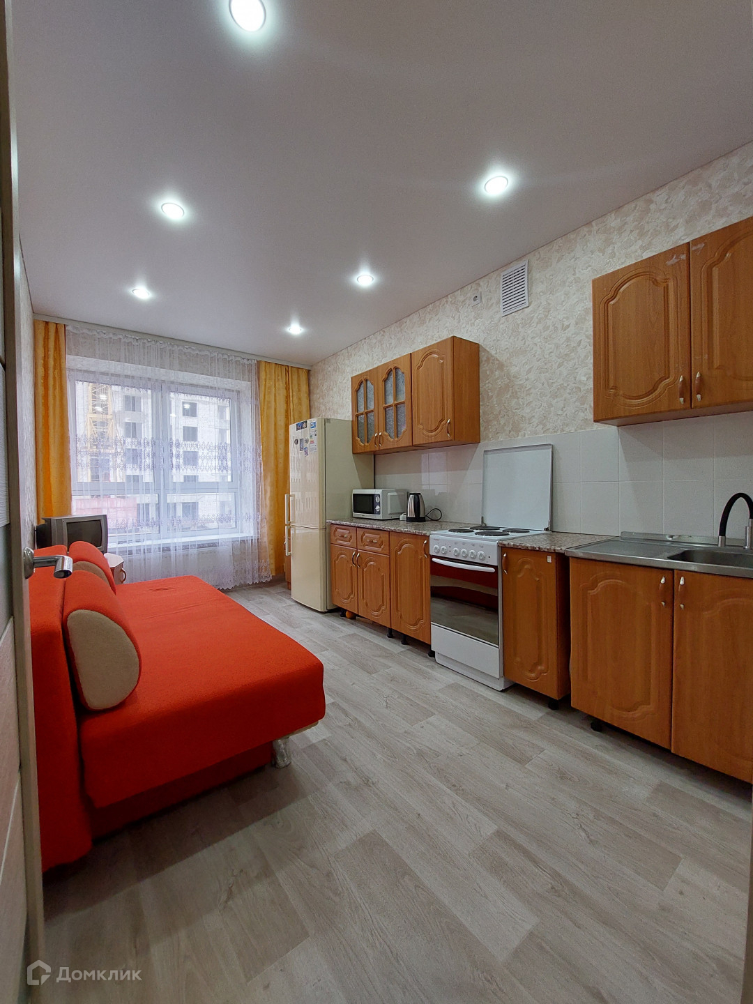 Отличная планировка: общая площадь 34,59 кв.м., просторная кухня гостиная 13,08 кв.м., санузел-3,74 кв.м., прихожая. Окна смотрят на аллею.