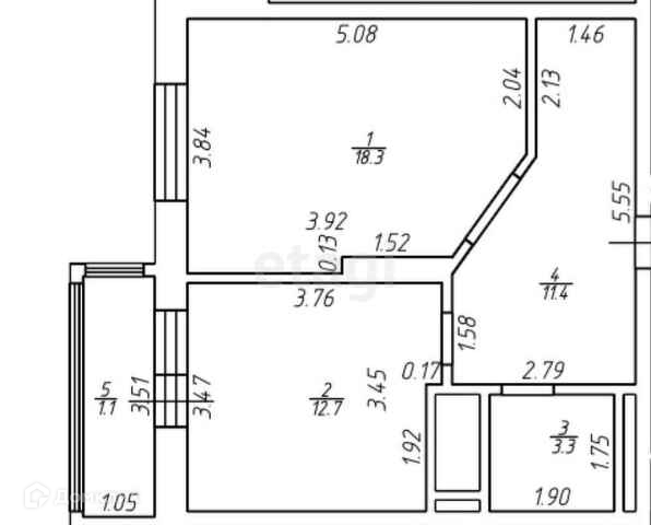 Общая площадь квартиры 44кв.м., расположенная на 5/10 эт. монолитно-кирпичного дома.