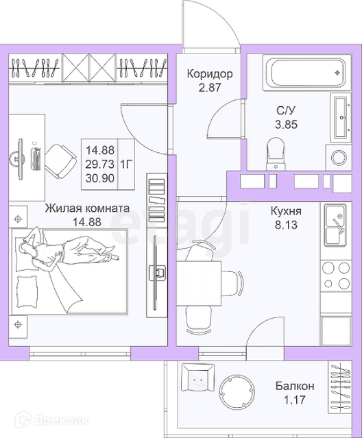 Общая площадь 29.9 м2