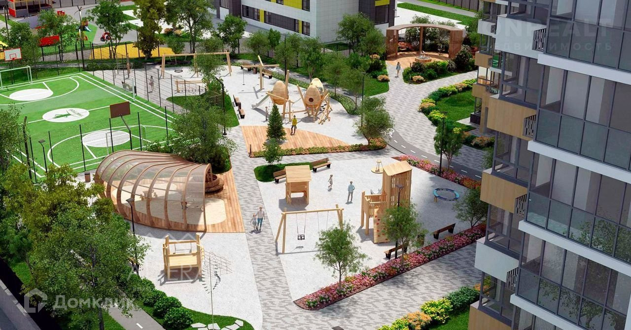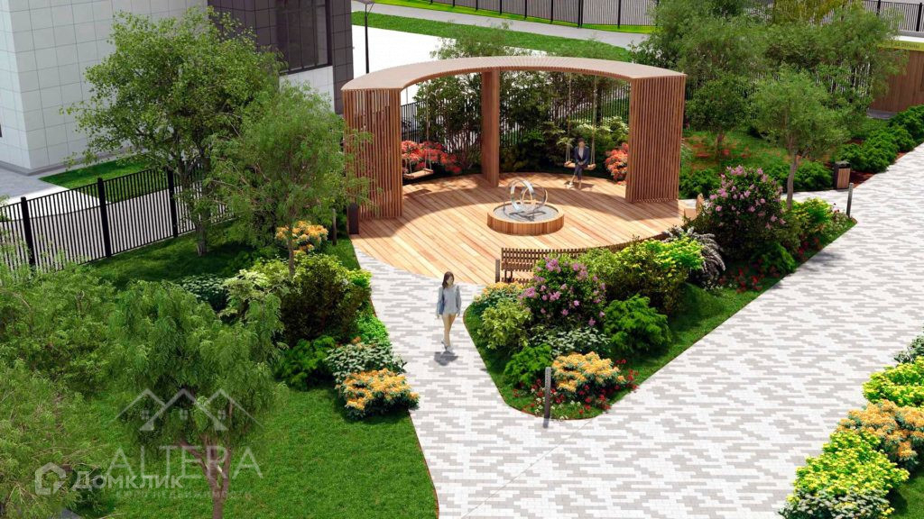 - Закрытый двор-парк с ландшафтным дизайном, благоустроенное пространство вокруг в европейском стиле