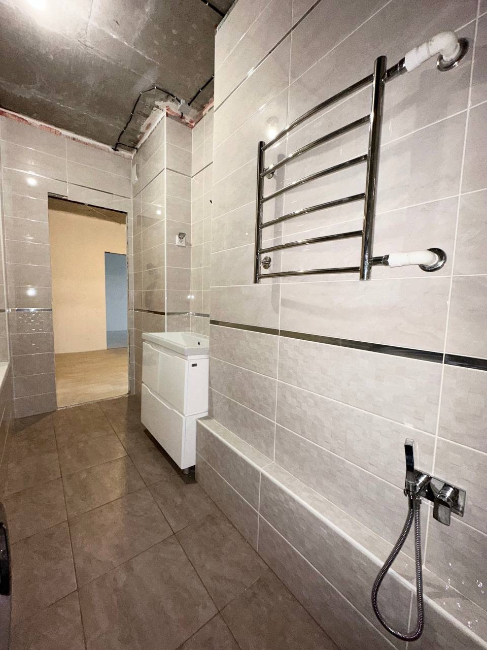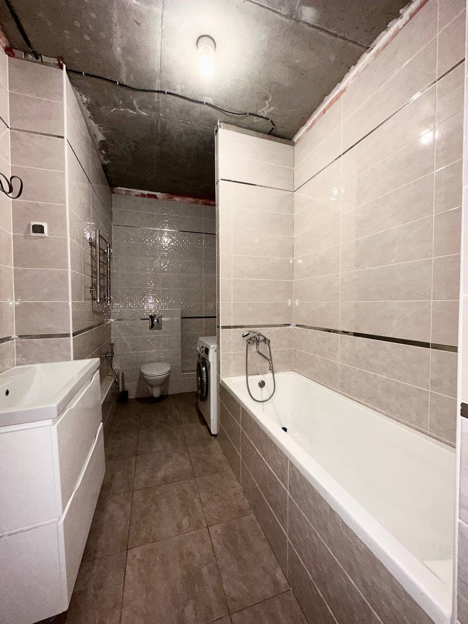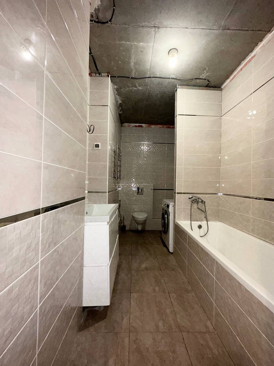 Санузел в современном кафеле, пол тёплый