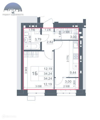 Общая площадь 34.24 м2