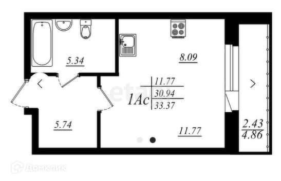 Общая площадь - 35 кв.м.