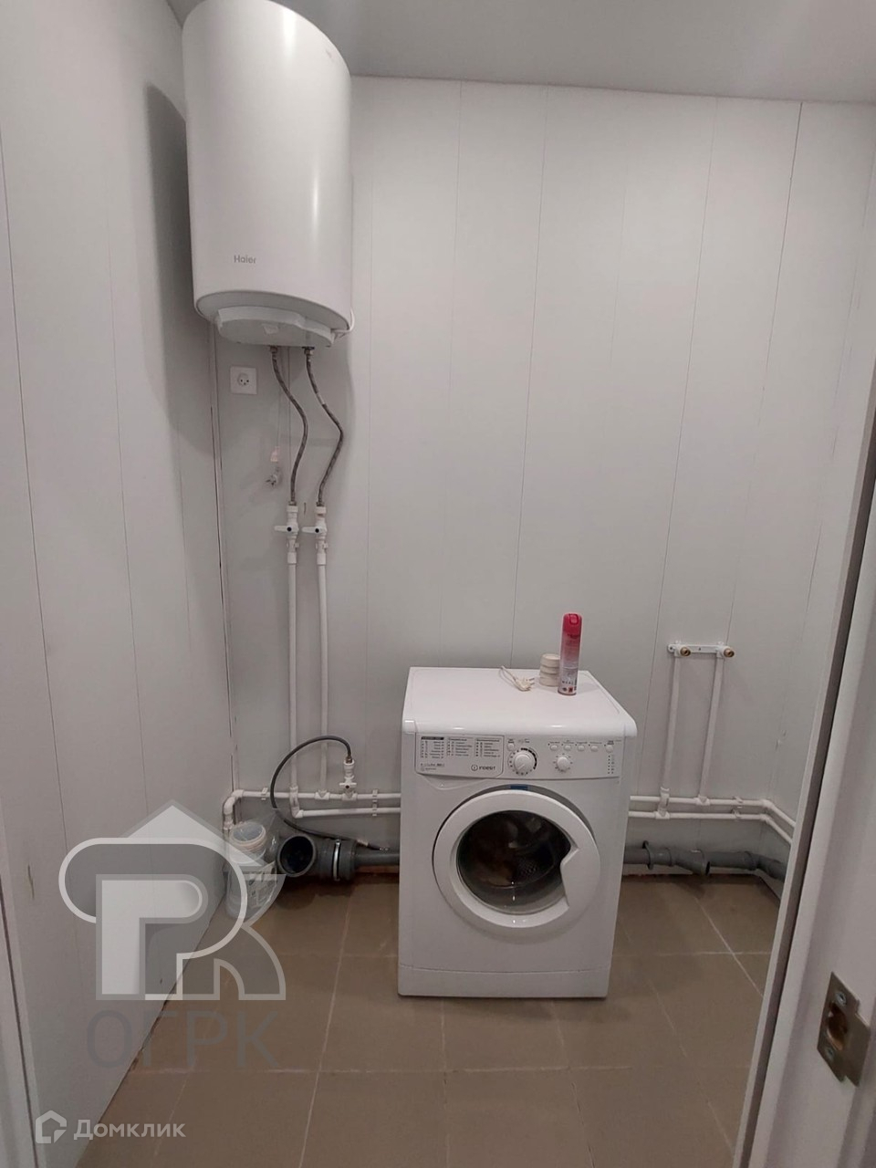 Санузел выложен плиткой, канализация - насос.