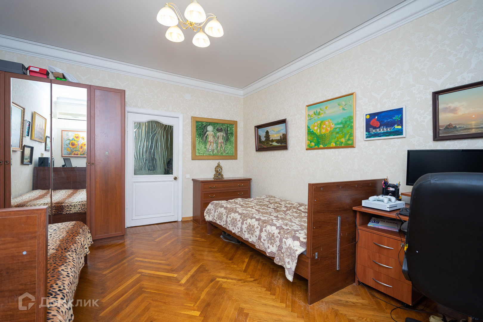 ⁃И самое чудное и ценное, на мой взгляд, что есть в этой квартире-это напольное покрытие. Это штучный паркет! Это просто роскошь!