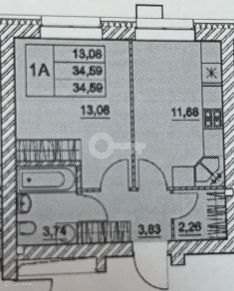 Общая площадь 34.8 м2