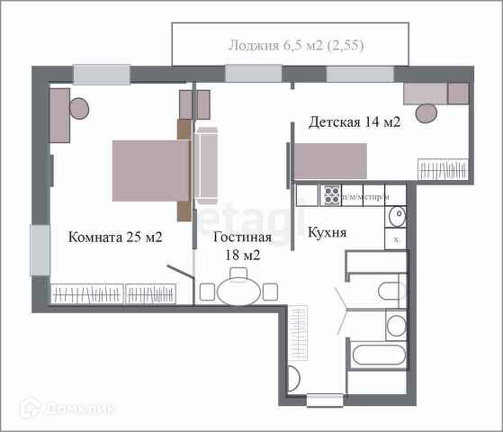 - детская комната с выходом на лоджию;