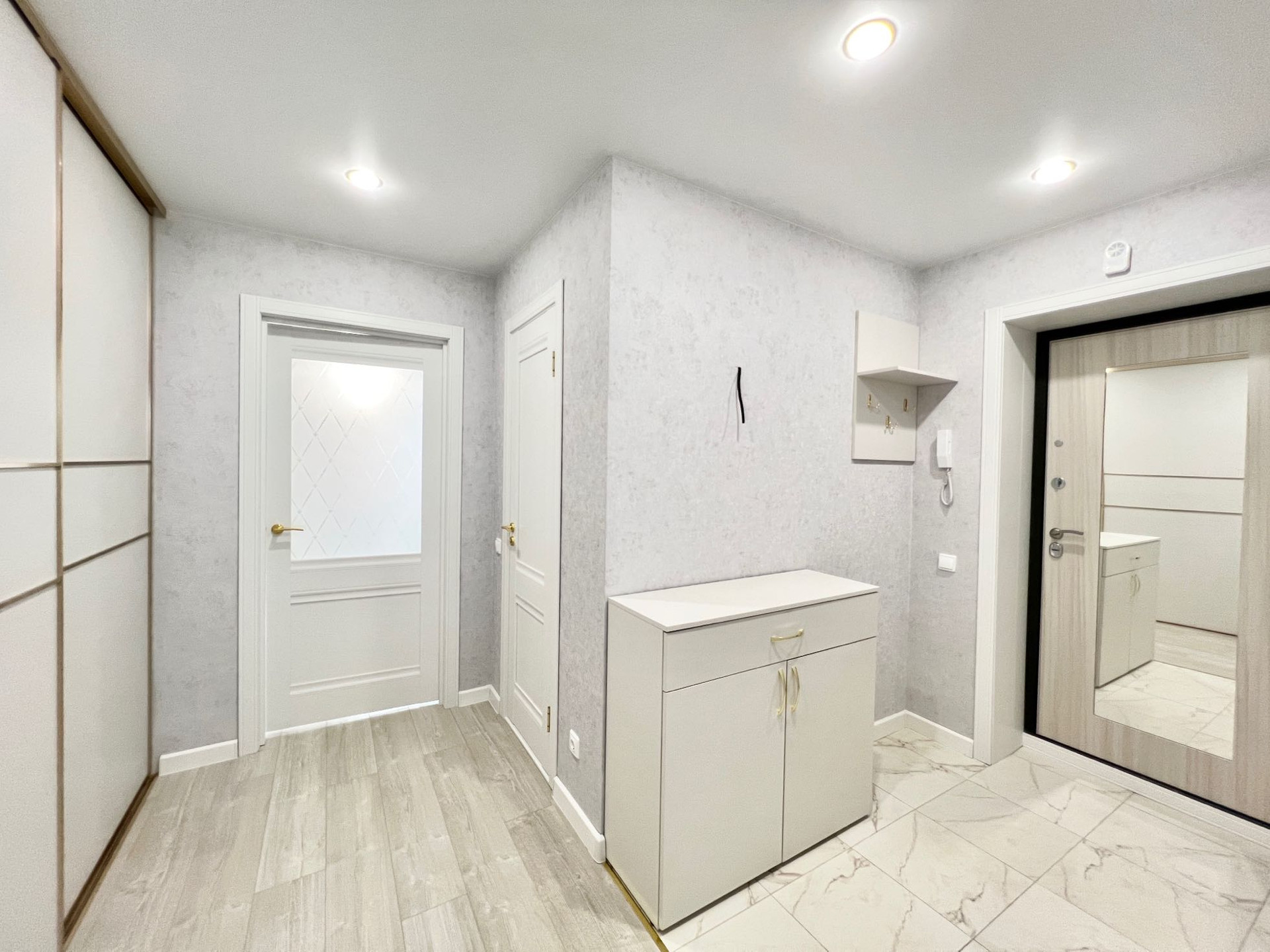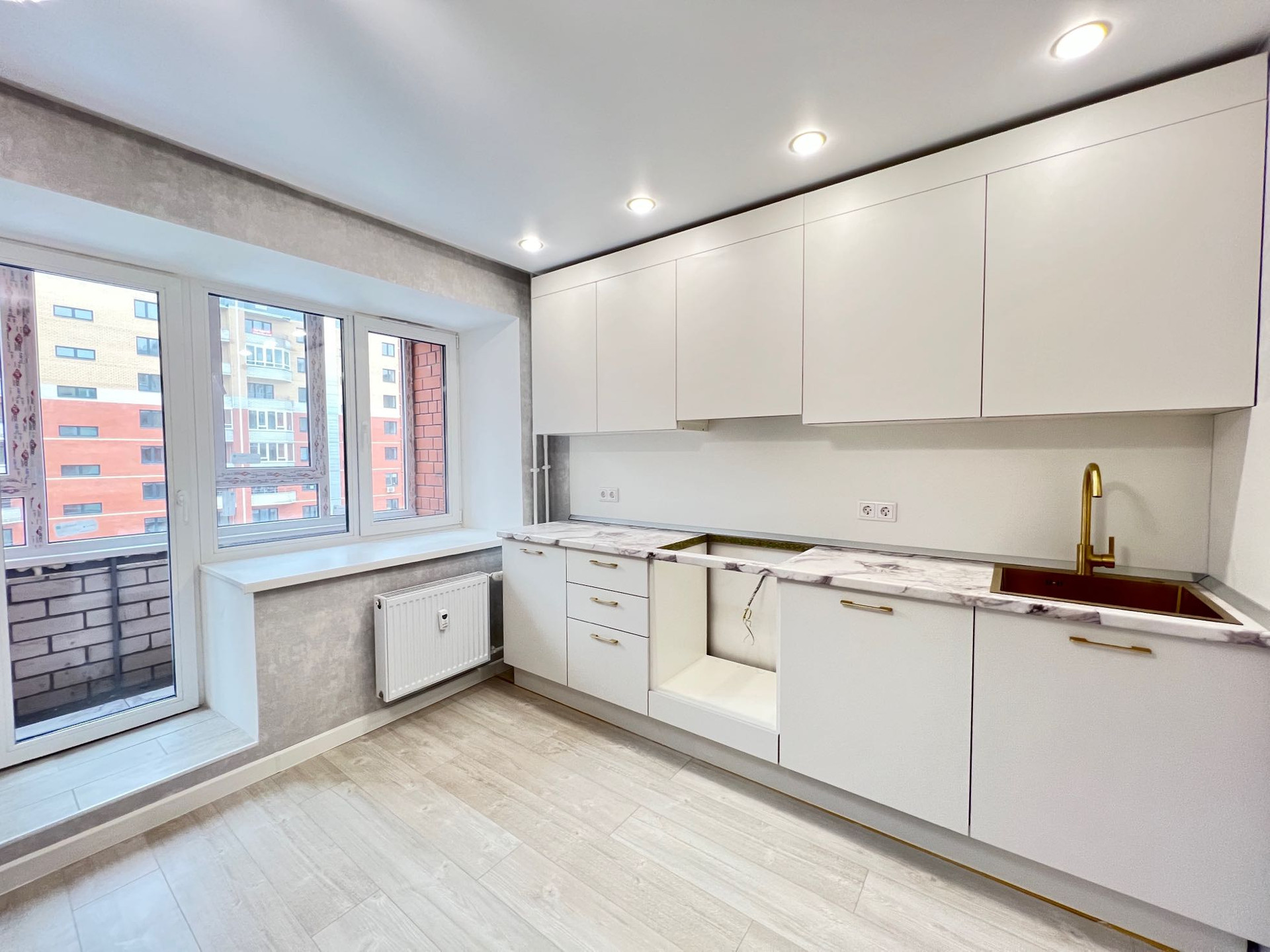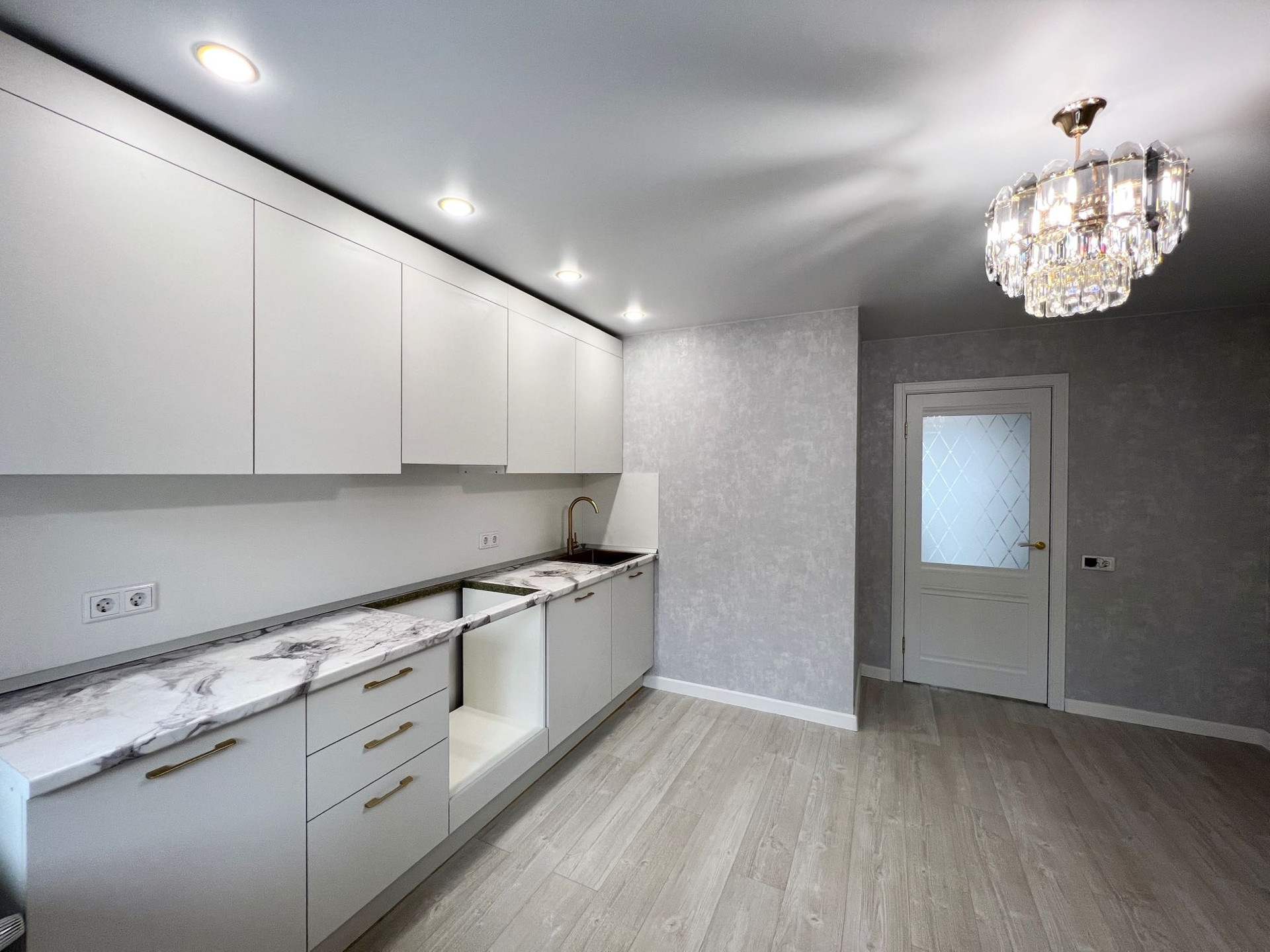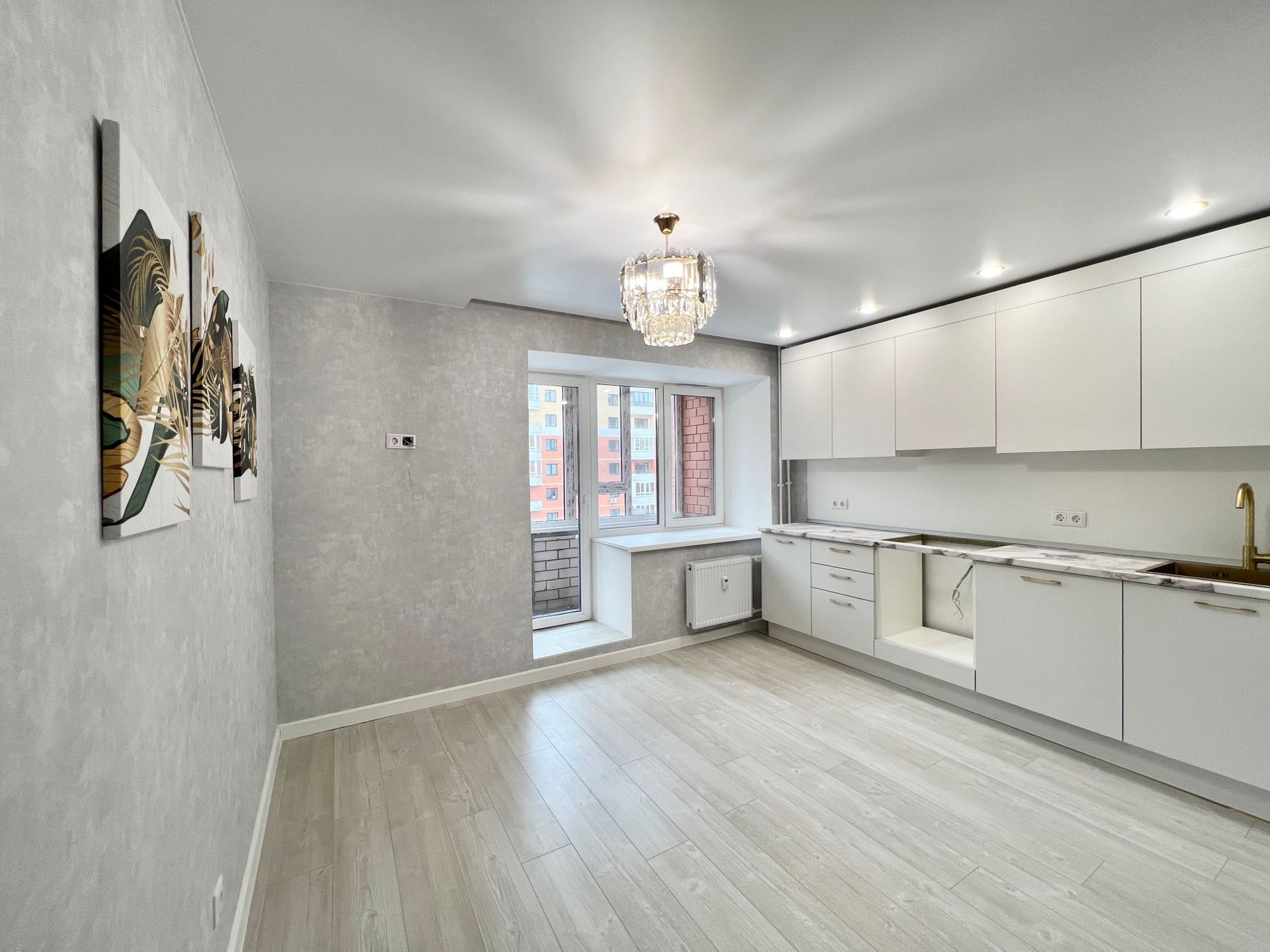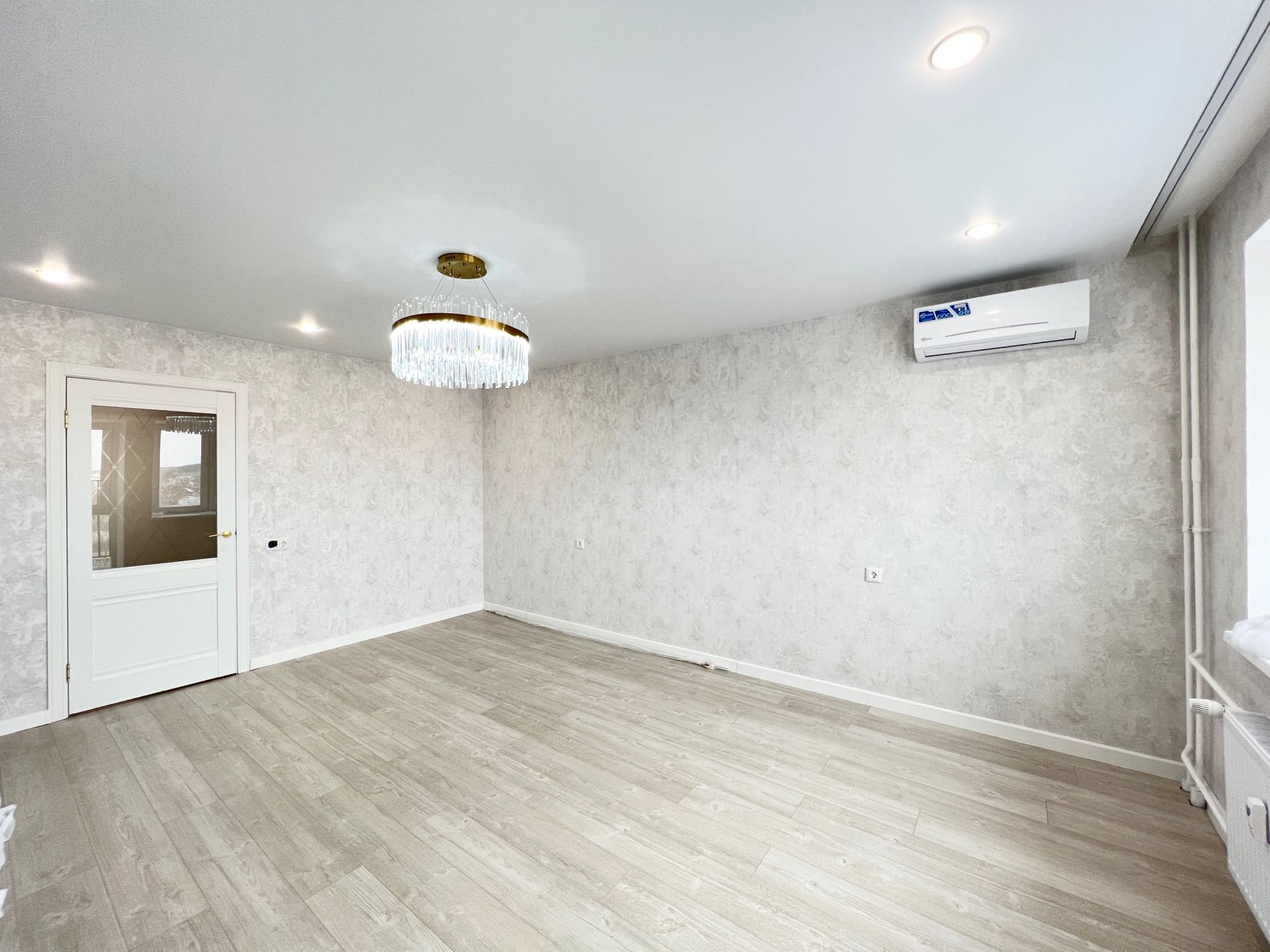 В качестве подарка в квартире остаётся кондиционер, люстры, огромный шкаф -купе, гардины, кухонный гарнитур.