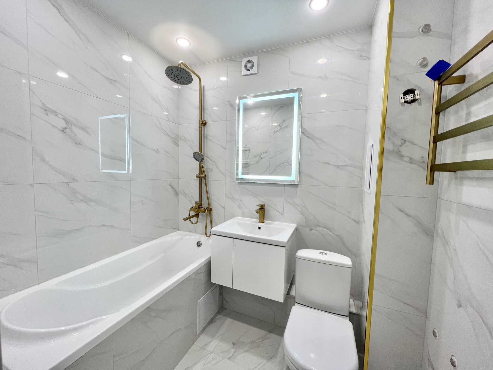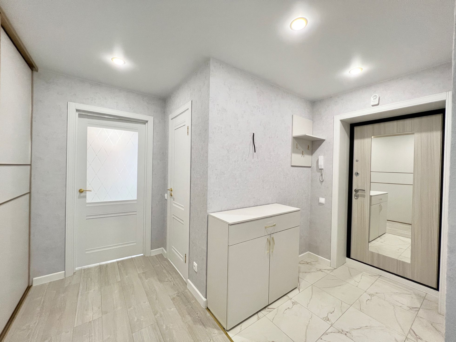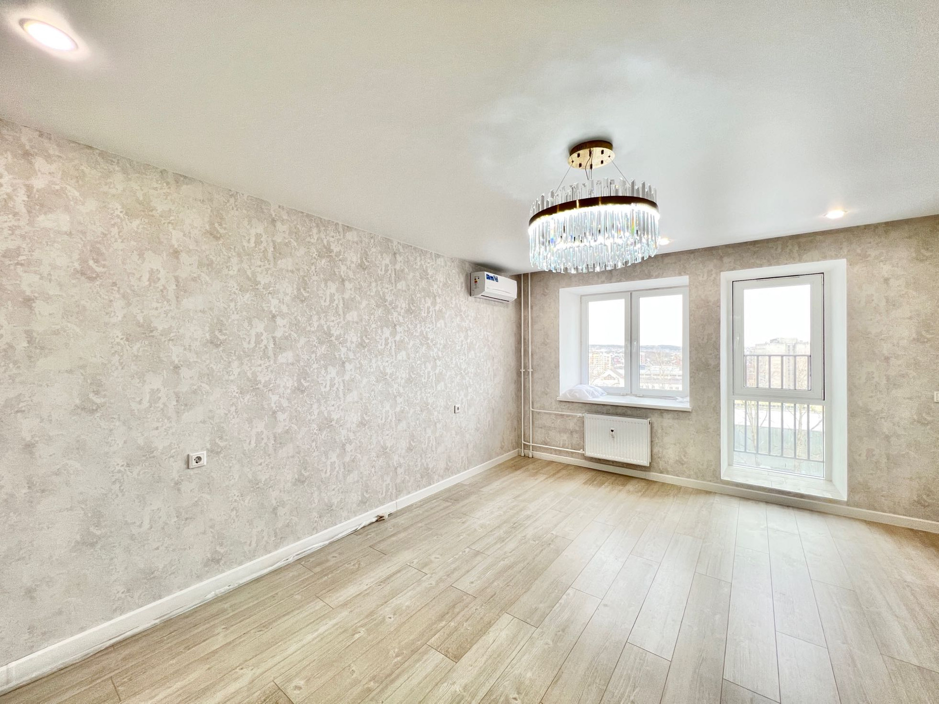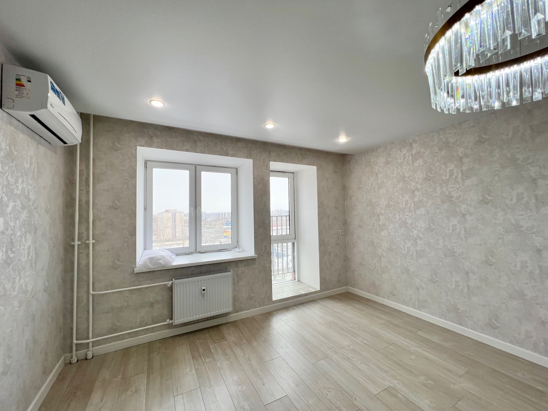 В квартире сделан качественный современный ремонт, установлены пластиковые окна, кондиционер, дорогая входная дверь, новые межкомнатные двери, биметаллические батареи, на полу постелен ламинат, натяжные потолки во всех комнатах с продуманной системой освещения.