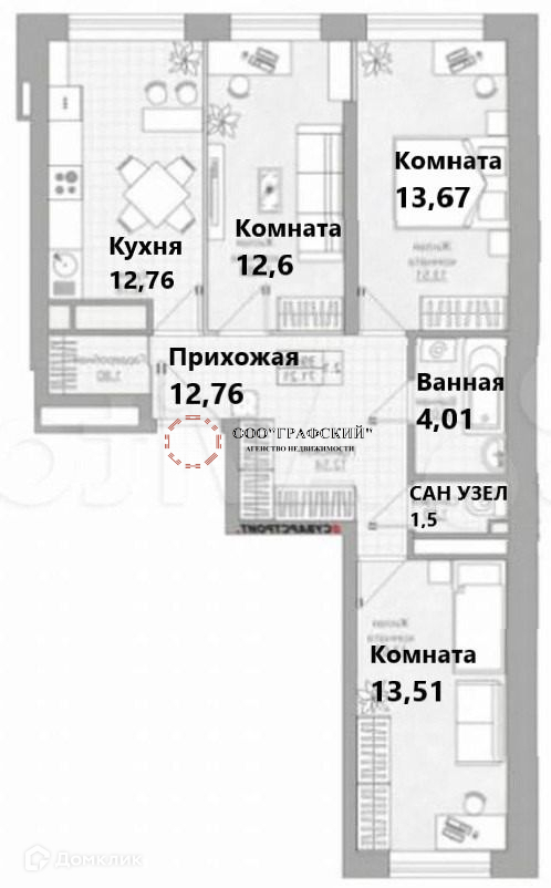 Площадь кухни 13 м2